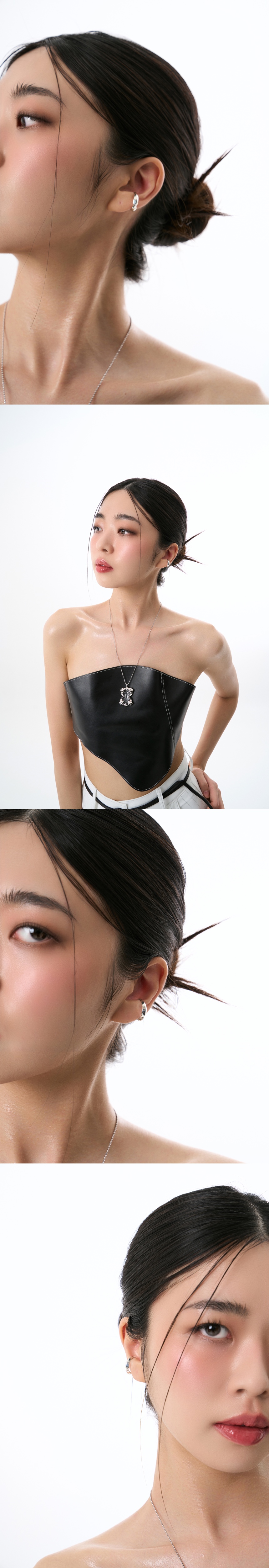 A set of earrings with a lightening shape pendant that symbolizes two "Fangs" of a venomous snake. Handcrafted in 925 sterling silver. Produced in local factory located in Seoul, Republic of Korea.