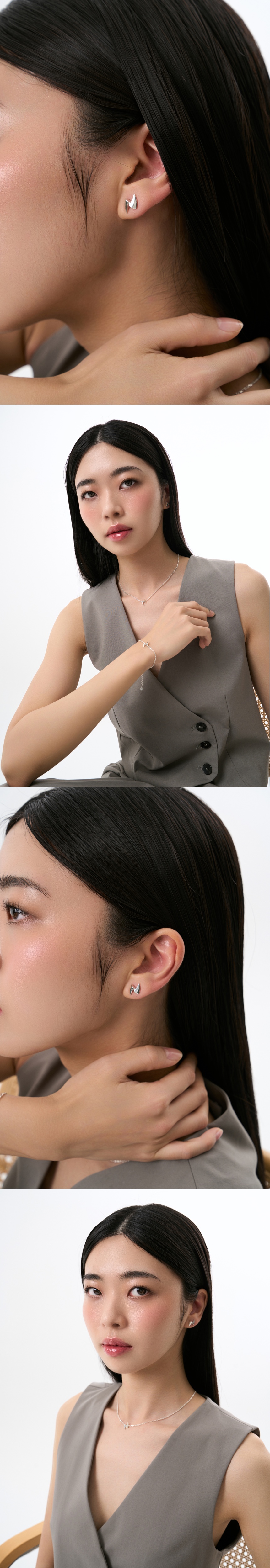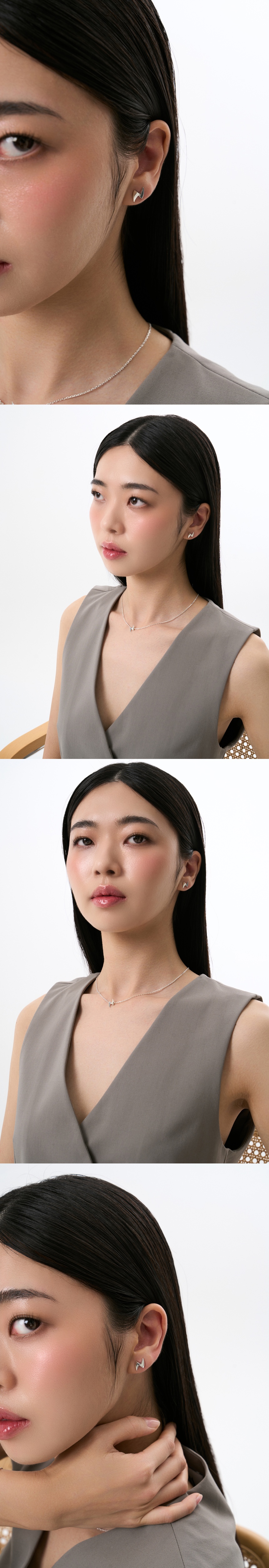 A set of earrings with lightening shape pendants that symbolize two "Fangs" of a venomous snake. Handcrafted in 925 sterling silver. Produced in local factory located in Seoul, Republic of Korea.