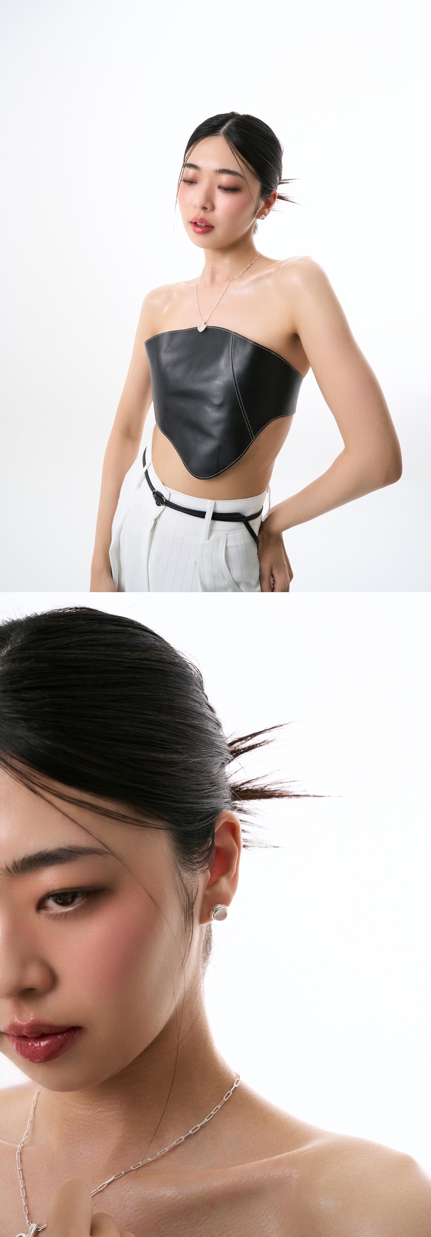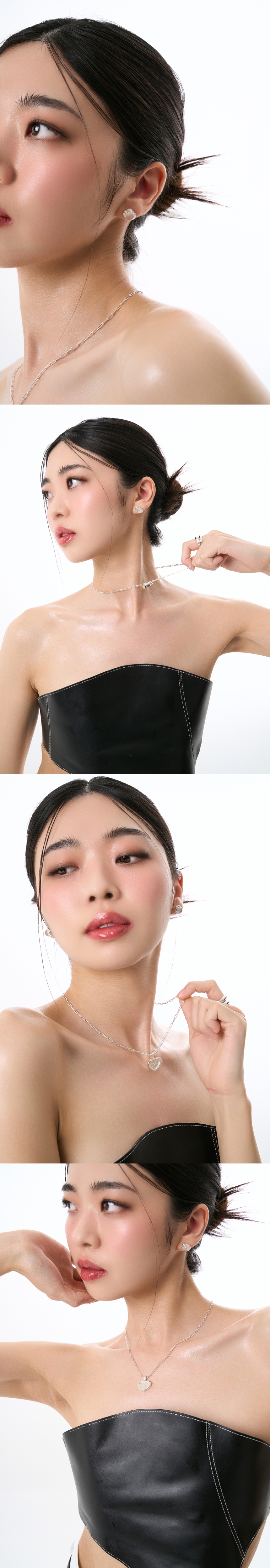A set of earrings with hemotoxins line signature shape. Handcrafted in 925 sterling silver and crystal. Produced in local factory located in Seoul, Republic of Korea.