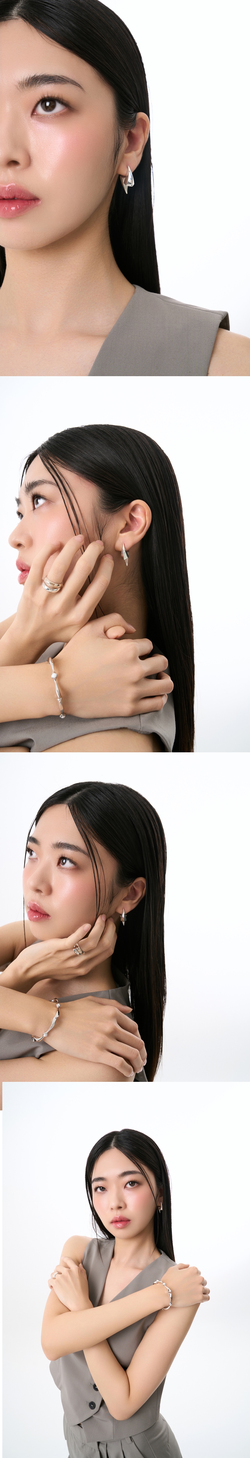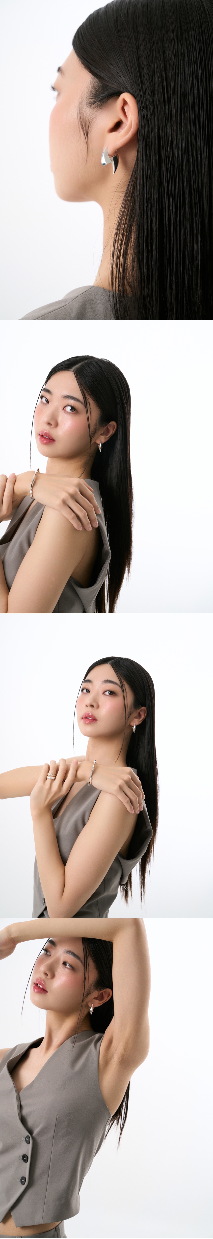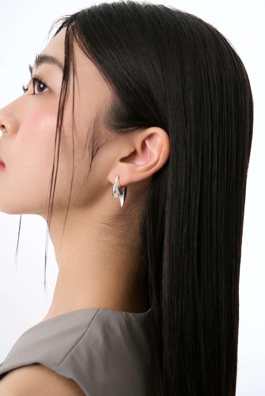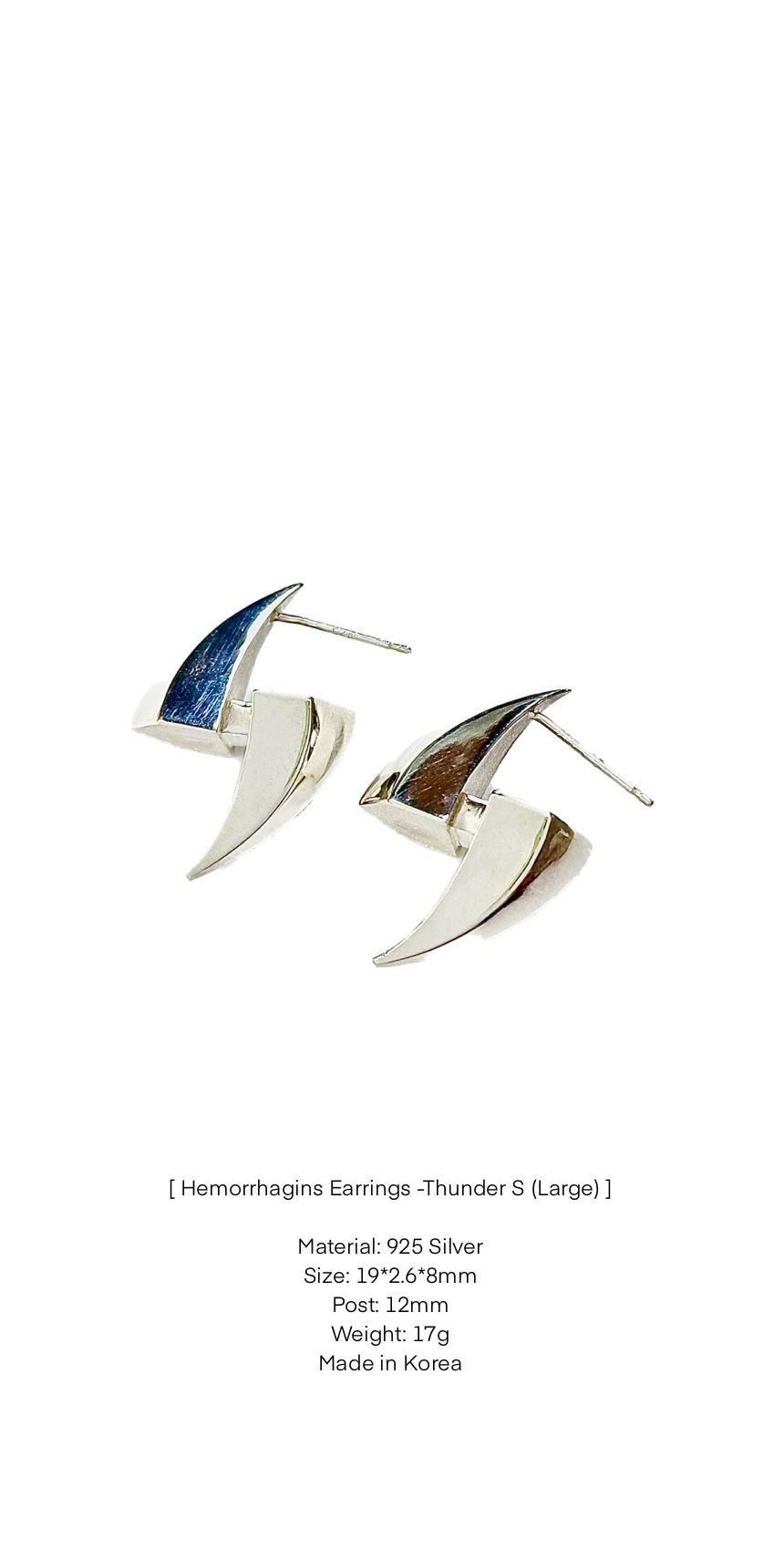 A bold set of earrings with lightening shape pendants that symbolize two "Fangs" of a venomous snake. Handcrafted in 925 sterling silver. Produced in local factory located in Seoul, Republic of Korea.