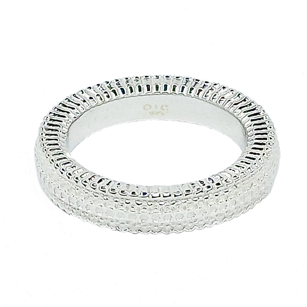 A ring that exudes luxurious brilliance from every angle, showcasing its dazzling shimmer without the need for a single cubic zirconia. Handcrafted in 925 sterling silver. Produced in local factory located in Seoul, Republic of Korea.